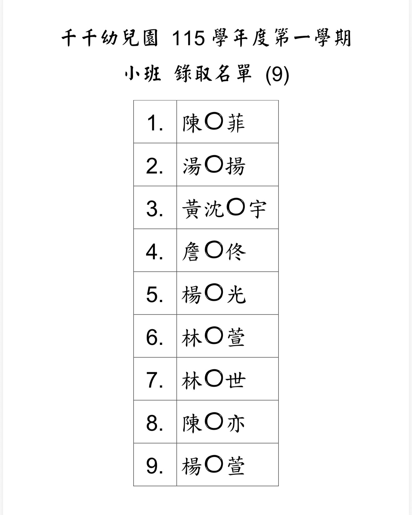 幼兒園公告